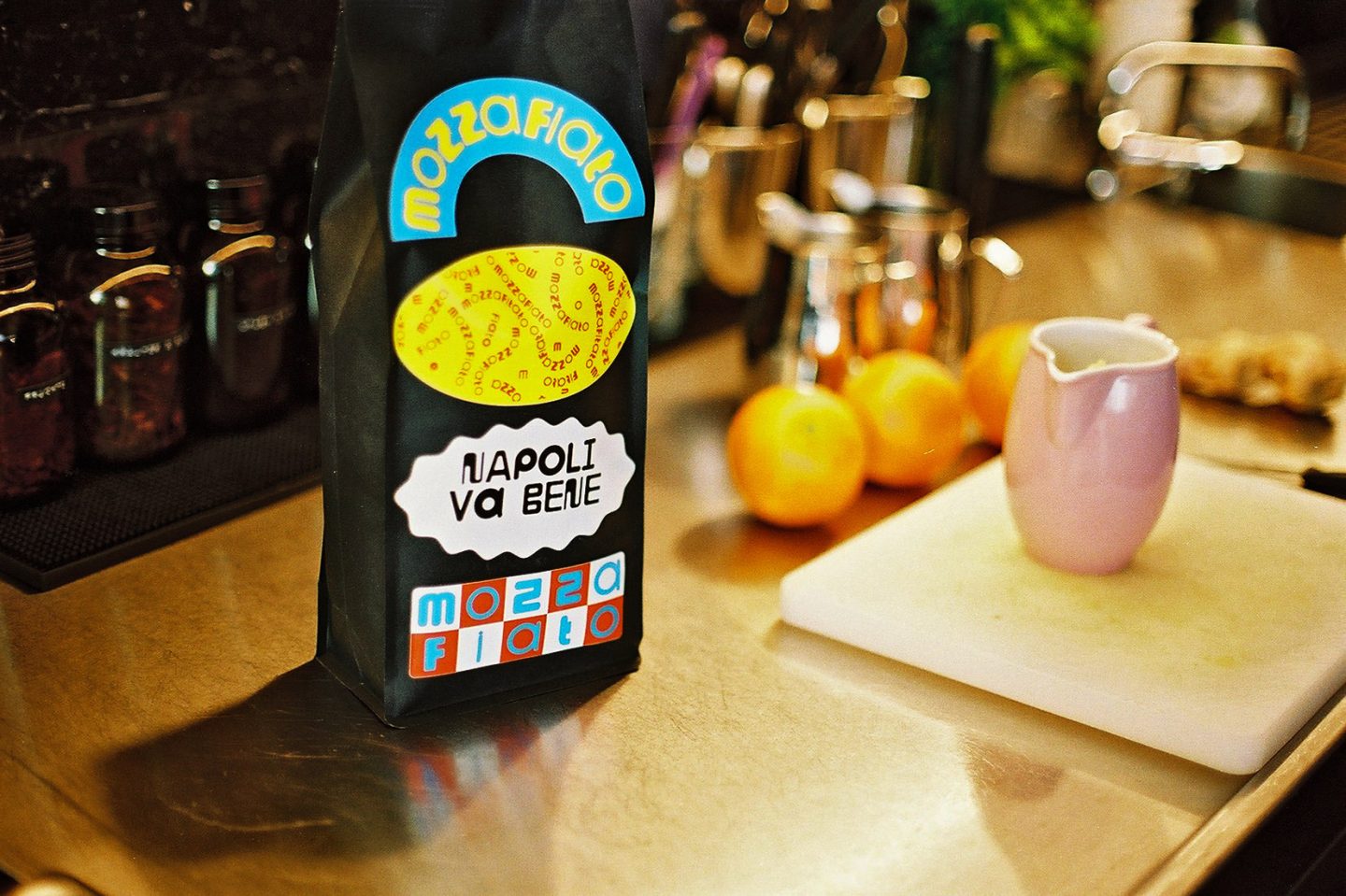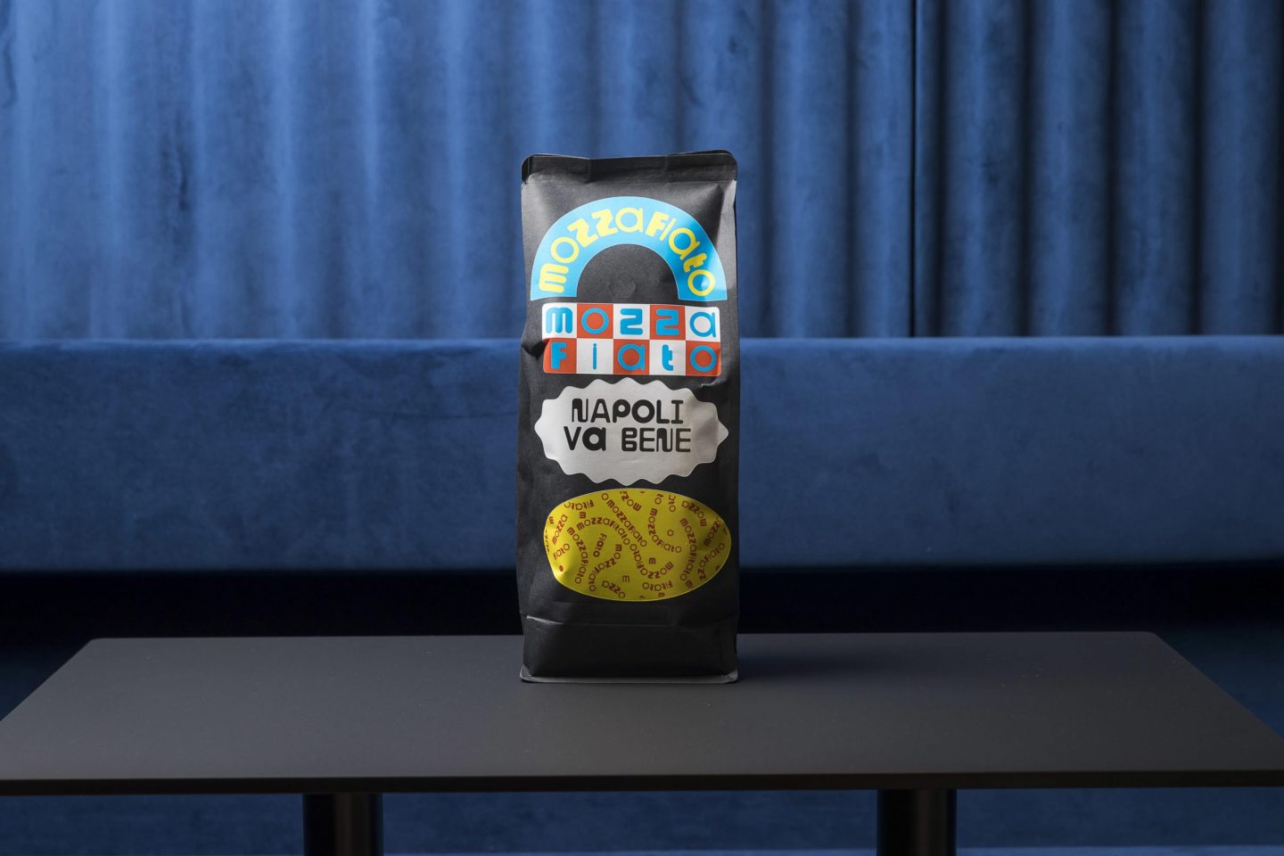 Additionally we also designed a sub-brand for Gian Paolo e Marcos very own roast — MOZZAFIATO. Accordingly, we used our very own variable typeface »Pepi« for that.