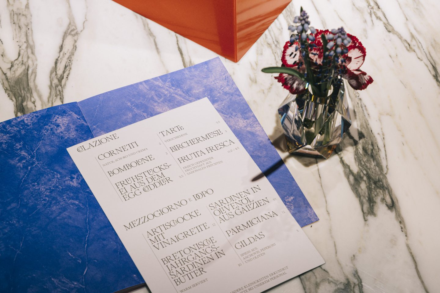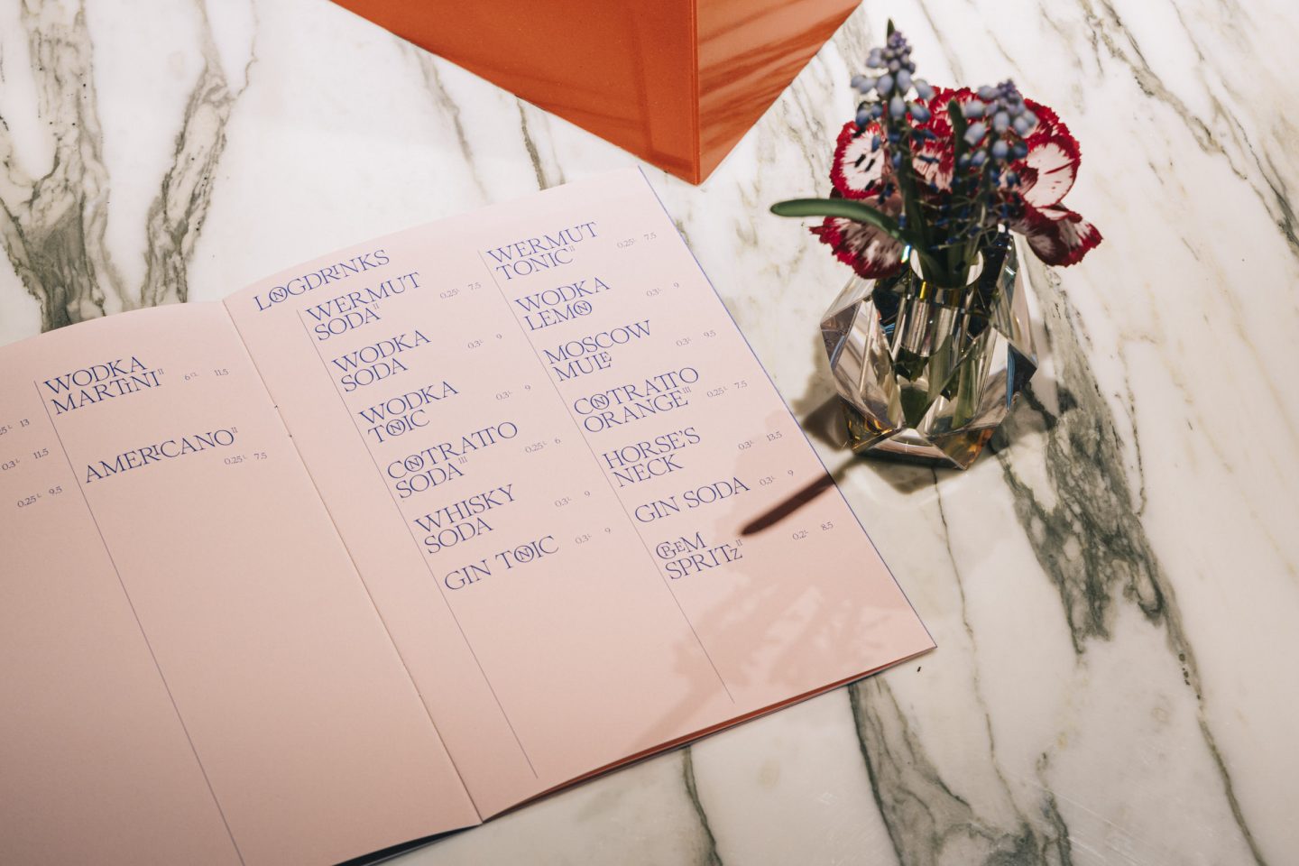 Subsequently, we applied design of Gian Paolo e Marco to various printed matter. The center-piece of every bar is its menu book. Especially with the attention to detail that was provided at »GPeM«. Identically we tried to continue this in the way we designed the menu book.