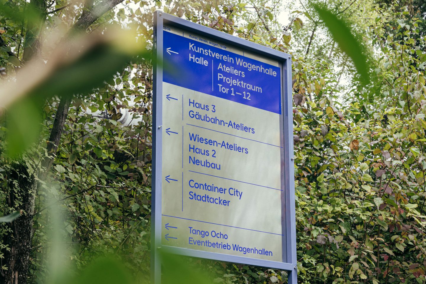 We developed an identity-creating wayfinding system and implemented it on the grounds of the Wagenhalle that represents the Kunstverein. After the building renovation and its completion in summer 2020, it was the optimal timeframe. Furthermore, its members on site and, the location it is in the neighbourhood, profit from it. Due to urban developments, it is extremely necessary for the association to gain visibility beyond the boundaries of its own area.