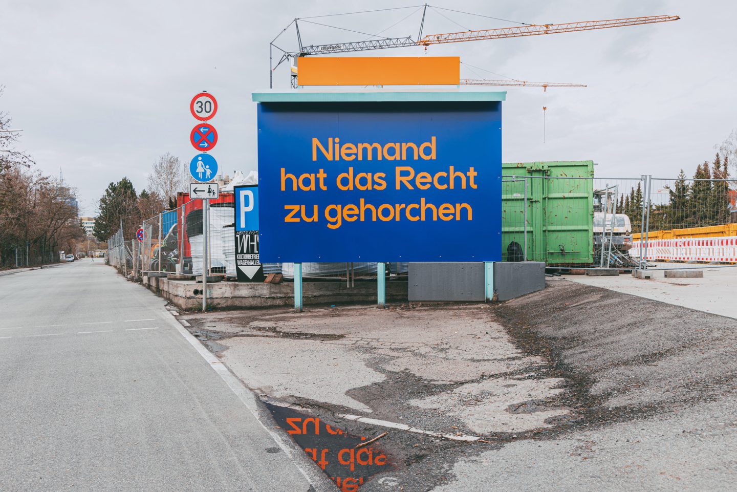 Subsequently, we designed and built the mural »Niemand hat das Recht zu gehorchen« with Nam Huynh, Hans-Jörg Seidler and Levin Stadler. The department of Culture and Arts, City of Stuttgart was responsible for its funding.