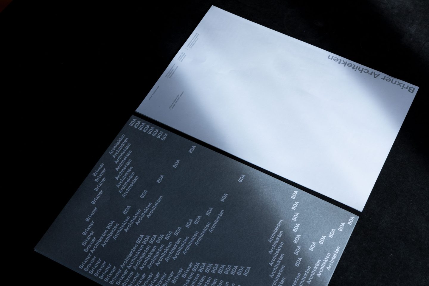 Corporate identity and stationery for Stuttgart architect Brixner Architekten BDA. In addition to letterheads and business cards, we implemented a website. The appearance is characterized by the repetitive play with the company name, which runs through all media.